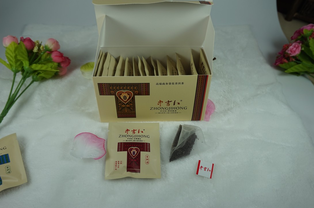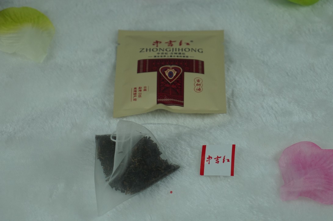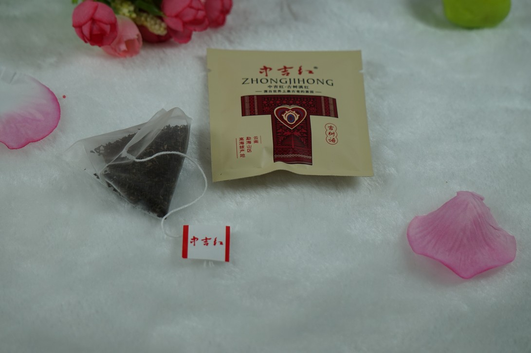 中吉紅古樹滇紅茶湯色紅艷,醇香爽滑,滋味甘甜; 建議沖飲方法 第一步:醒茶 撕開鋁紙袋,茶包入水,沖入少許開水,約兩秒后提出茶包,水倒掉。 第二步:沖茶 將熱茶包投入杯中,倒入約200毫升開水(礦泉水為佳),抖動(dòng)茶包至20-30秒后提起茶包即可。茶包可重復(fù)2次沖泡。