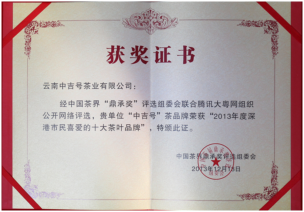 中吉號(hào)榮獲 深圳市茶葉流通協(xié)會(huì)“深圳市茶行業(yè)創(chuàng)新型標(biāo)桿品牌”